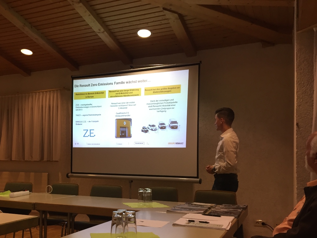 Prof. Dr. Simon von der TSB Bingen brachte Elektromobilität theoretisch an die Zuhörer und Herr Muntean schloss mit seinem sehr praktischen Teil daran an.