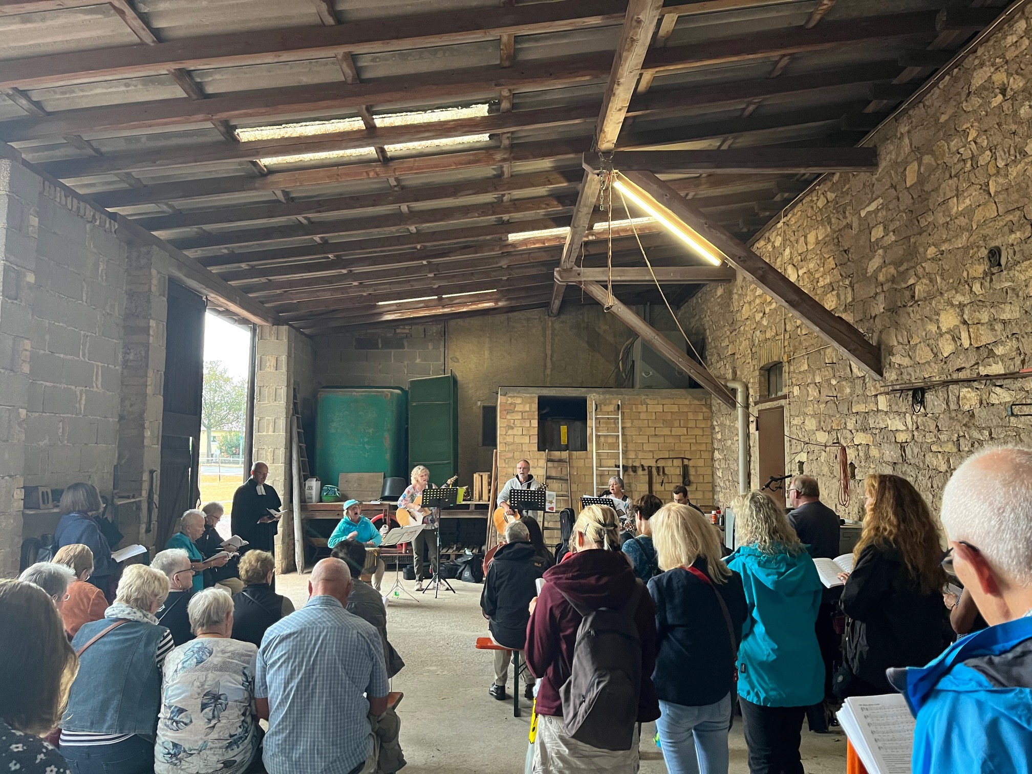 Auch am Samstag feierte Wöllstein weiter mit einem regen Markttreiben mit zusätzlichen Freifahrten, welche für das ausgefallene Feuerwerk durch die Ortsgemeinde und die Firma JUWÖ Poroton für Kinder und Jugendliche gesponsert wurden. Pünktlich um 17.30 Uhr zum Start des ökumenischen Gottesdienstes wurden die wochenlangen Wünsche nach Regen scheinbar erhört und es öffneten sich alle Schleusen, sodass es kräftig regnete und kurzerhand in der benachbarten Scheune von Karl Hellriegel gemeinsam Gottesdienst gefeiert wurde.