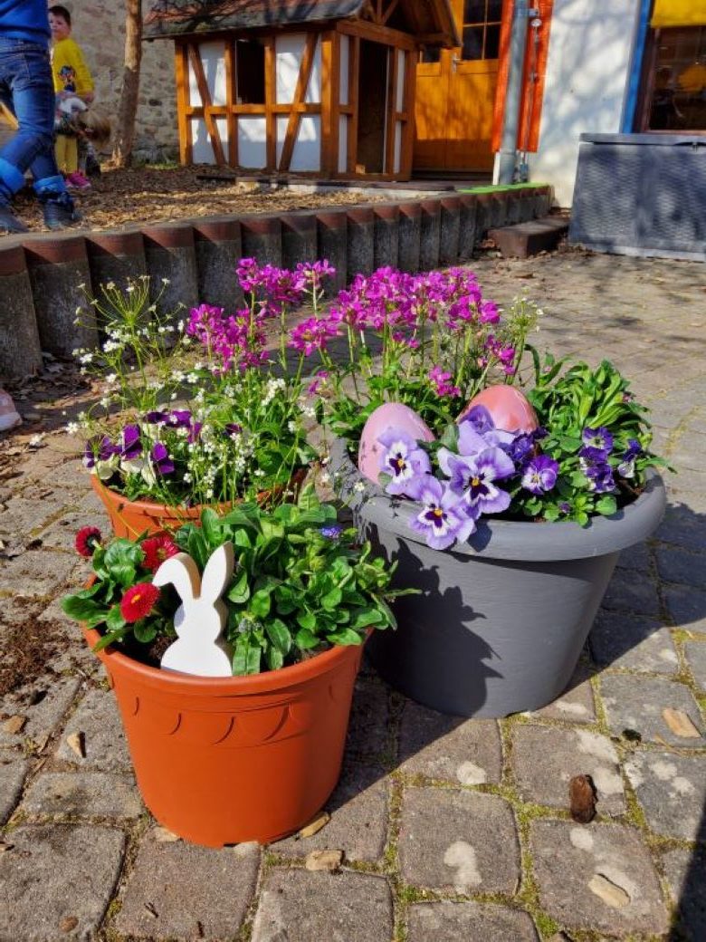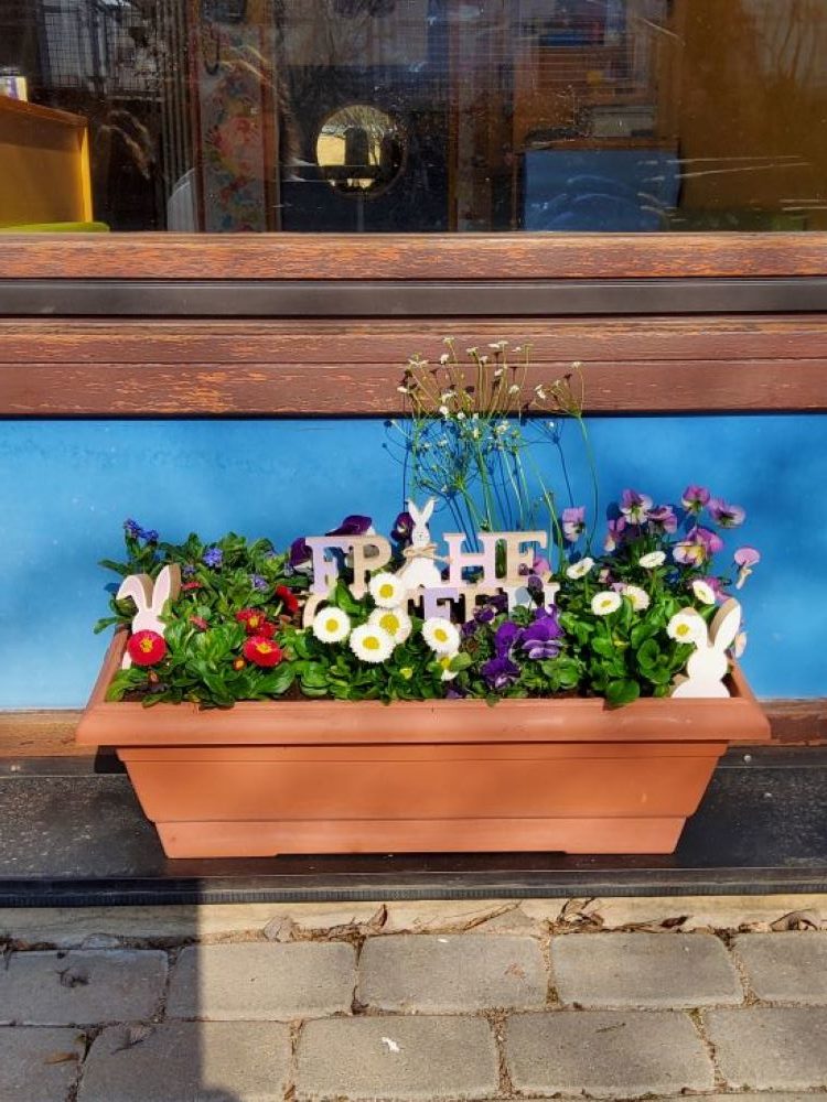 Jede kreative Gestaltung, sei es in Form einen Frühlingsfensters, Osterkranz , Frühlingsbepflanzung macht unseren derzeit tristen Alltag ein Stück weit leuchtender, an dem sich jede und jeder bei einem Spaziergang durch Wöllstein erfreuen kann.