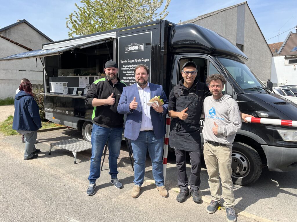Ortsbürgermeister Johannes Brüchert und weitere Gäste freuten sich bereits am vergangenen Donnerstag über das neue Angebot in Wöllstein und konnten bei bestem Wetter in der Mittagspause einen nachhaltigen Kebab genießen.