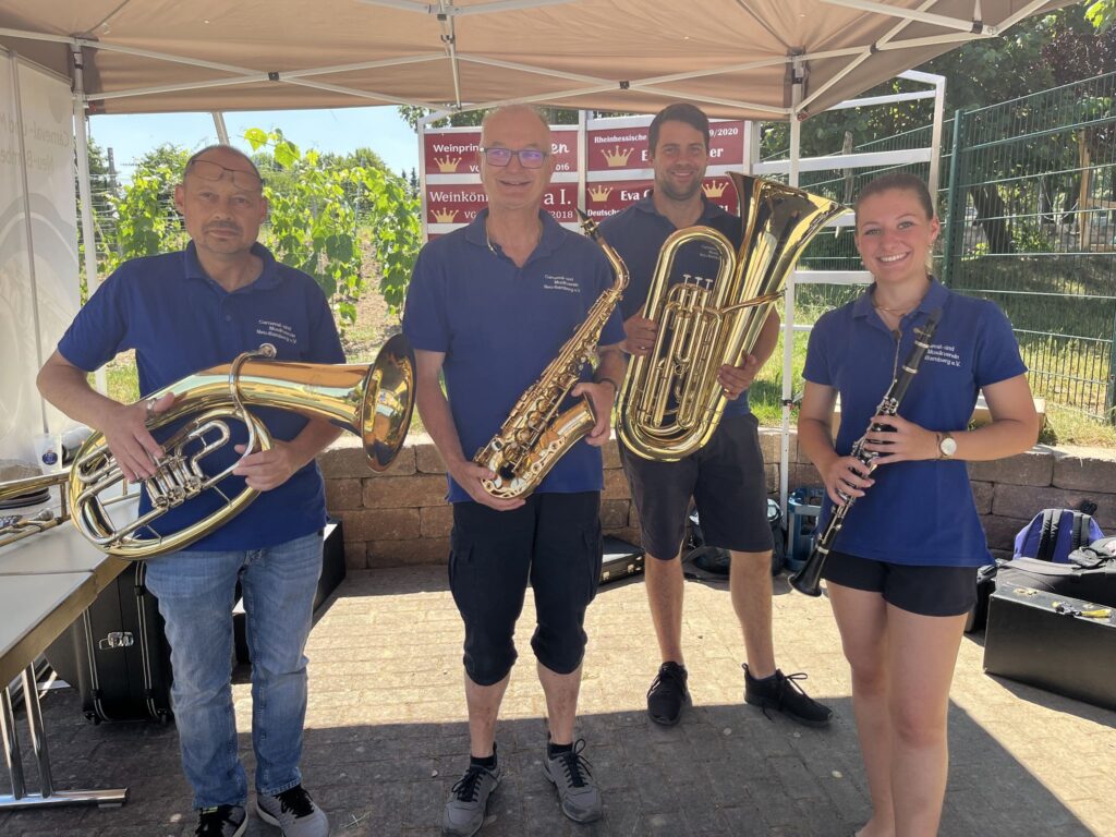 Für eine Abkühlung bei den heißen Temperaturen kümmerten sich Mitglieder des Gemeinderates und der Ausschüsse an der Theke und für das leibliche Wohl der Foodtruck von Kasselmann Catering sowie die Landfrauen mit Kaffee und Kuchen. Für beste Unterhaltung auf der Bühne sorgten zur Eröffnung der Kirchenchor Cäcilia und die beiden Kindertanzgruppen Lucky Stars und Jellylorum.